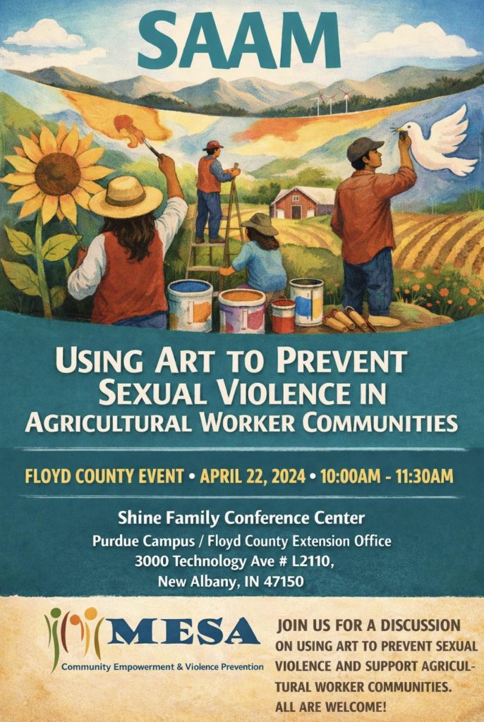 NEW ALBANY – MESA: Community Empowerment and Violence Prevention will host a special event for sexual assault awareness month on Wednesday, April 22, 2026. The presentation, titled Using Art to prevent sexual violence in Agricultural Worker Communities, is scheduled for 10:00 a.m. to 11:30 a.m. at the Shine Family Conference Center located at the Purdue Campus/Floyd County Extension Office.