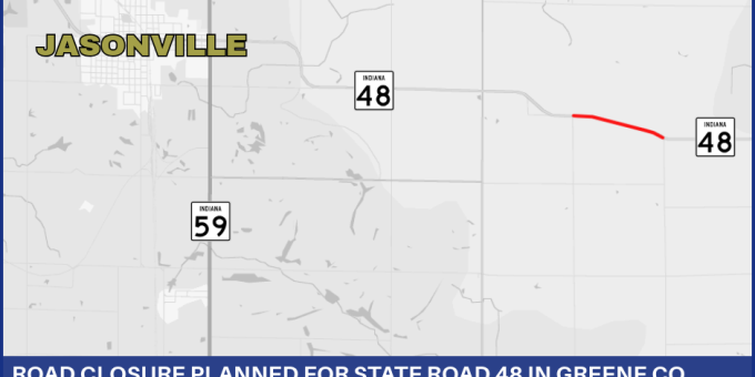 GREENE COUNTY – The Indiana Department of Transportation announces a road closure for State Road 48 in Greene County.