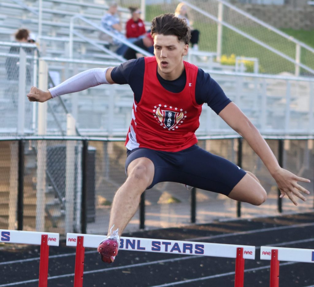 BNL’s other victories were double-duty champs. Tripp Stahl took the discus (157-10) and shot put (50-6), while Luke Morris sailed to wins in the 110 high hurdles (15.65) and 300 low hurdles (42.72). Ben Conner also won twice, taking the long jump (18-9.5) and high jump (5-6).