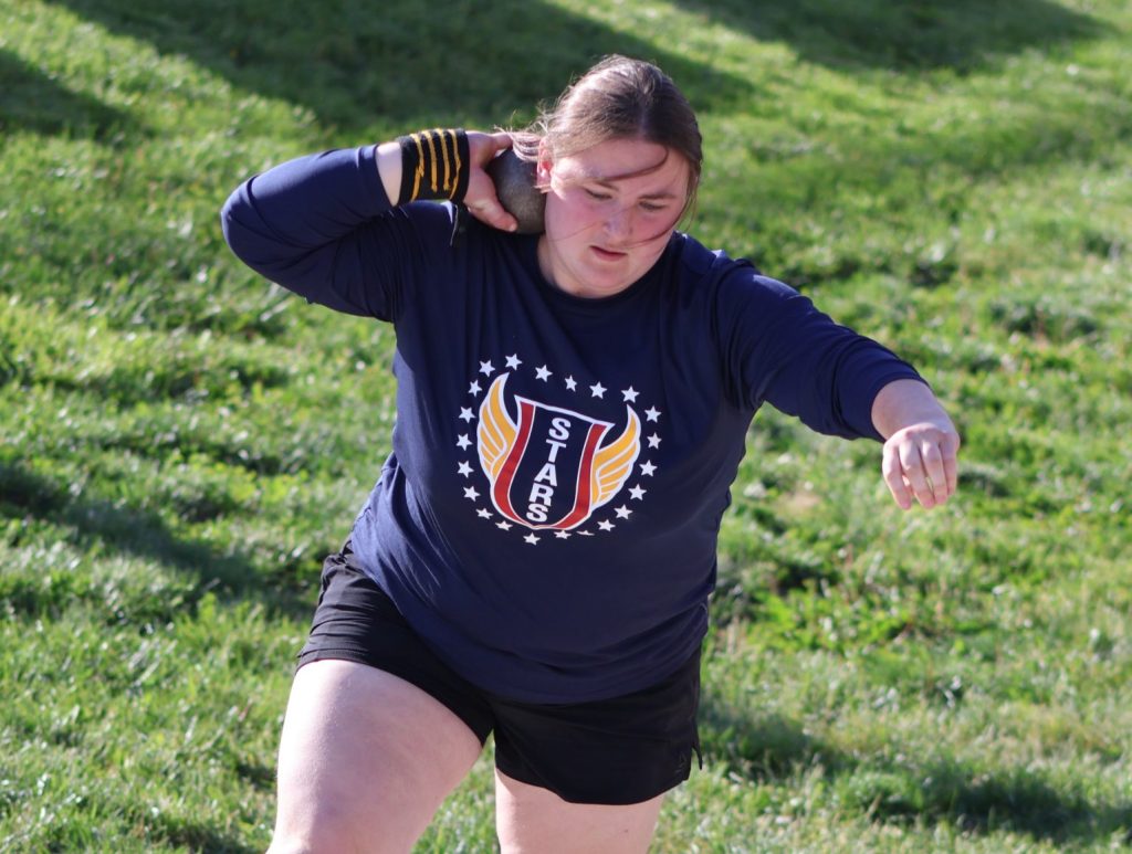 Points were precious for the Stars. Alaina Fish was second in the high jump, Madison Chandler was third in the 1600 and 3200, Voigtschild was third in the 800, Avery Brown was third in the pole vault, Emma Heinzman took third in the long jump, Clara Lumpe was third in the discus, and Madalyn Mason was third in the shot put.