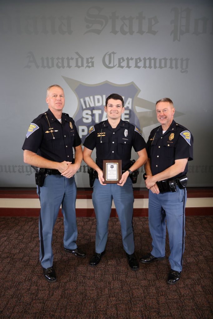 INDIANAPOLIS – Indiana State Police Superintendent recently named Trooper William Gigerich, of the Indianapolis District, as the 2025 Trooper of the Year. Trooper Gigerich was recognized earlier this week at a statewide ISP awards ceremony. Each district in the state selects a “Trooper of the District,” and from that list, the Superintendent and his staff select the Trooper of the Year. As part of this award, Trooper Gigerich received a new patrol vehicle.