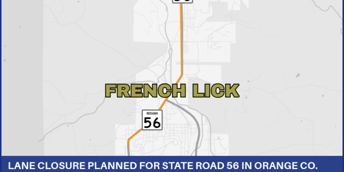 ORANGE COUNTY – The Indiana Department of Transportation announces alternating lane closures for State Road 56 in Orange County.