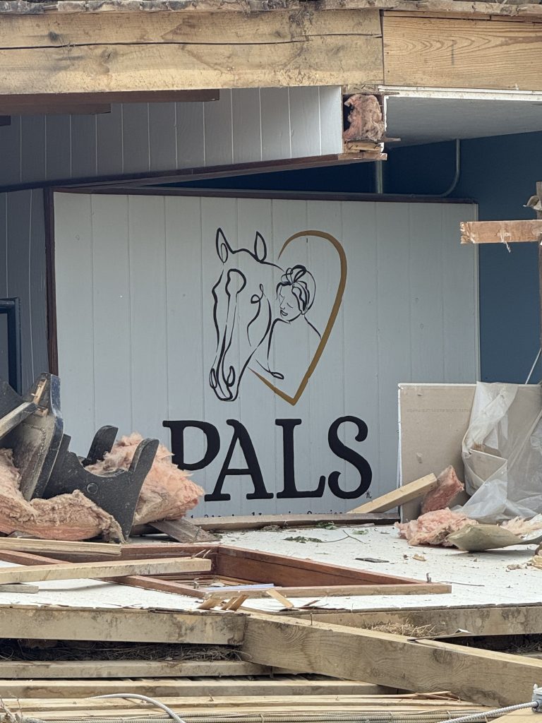 The tornado leveled primary structures on the PALS campus, but it could not dampen the spirit of the organization. In an extraordinary display of resilience, PALS was back to offering lessons in an outdoor arena to dedicated clients less than one month after the barn was destroyed.