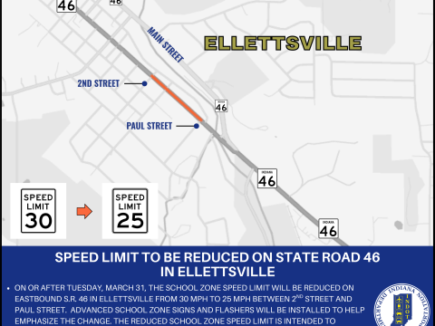 MONROE COUNTY – The Indiana Department of Transportation (INDOT) is scheduled to reduce the speed limit on eastbound State Road 46 on or after Tuesday, March 31,…