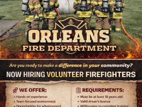 ORLEANS — The Orleans Fire Department is now accepting applications for volunteer firefighters. Department officials say the opportunity offers hands-on experience, a team-focused environment, and…