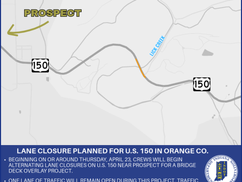 ORANGE COUNTY – The Indiana Department of Transportation announces alternating lane closures on U.S. 150 in Orange County. Beginning on or around Thursday, April 23,…