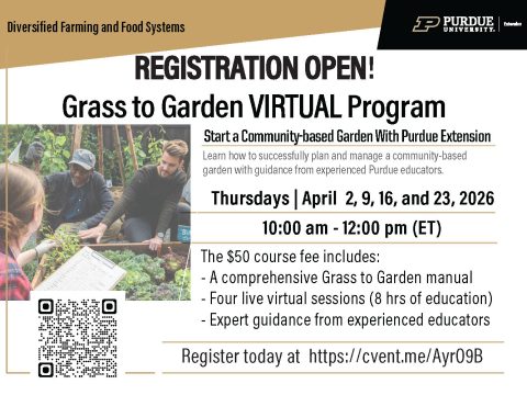 WEST LAFAYETTE – Purdue Extension is now accepting registrations for the Grass to Garden Virtual Program, a course designed to help participants start and manage…
