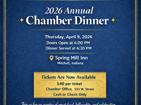 MITCHELL — The Greater Mitchell Chamber of Commerce will host its 2026 Annual Chamber Dinner on Thursday, April 9, at the Spring Mill Inn in…