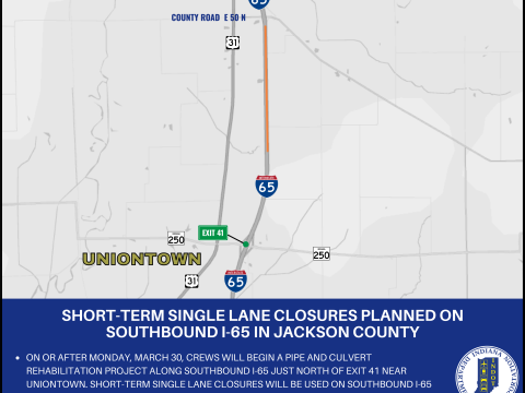 JACKSON CO. –Â Indiana Department of Transportation contractor Hall Contracting, Inc., is scheduled to begin a pipe and culvert rehabilitation project along southbound I-65 in Jackson…