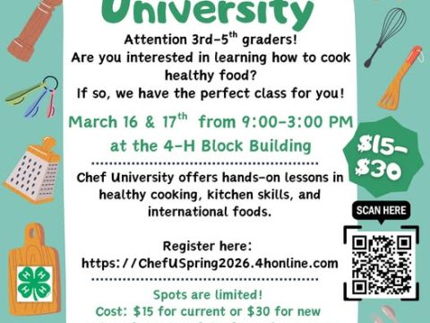 PAOLI – Purdue Extension Orange County will host CHEF University, a hands-on cooking and nutrition program for youth in grades three through five, during spring…