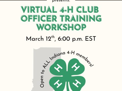 INDIANA — Indiana 4-H will host a statewide virtual Club Officer Training for youth in grades 3 through 12 on Thursday, March 12. The free…