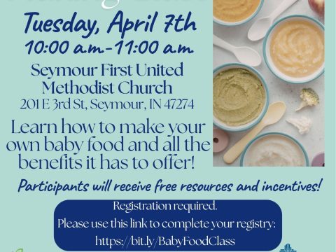 SEYMOUR — Purdue Extension Jackson County will offer a free Baby Food Making Class on Tuesday, April 7, from 10 to 11 a.m. at Seymour…