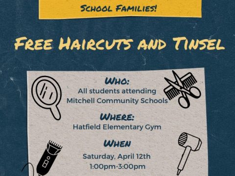 MITCHELL – Mitchell Community Schools is offering free haircuts and tinsel applications to all students on Saturday, April 12th, from 1:00 p.m. to 3:00 p.m….
