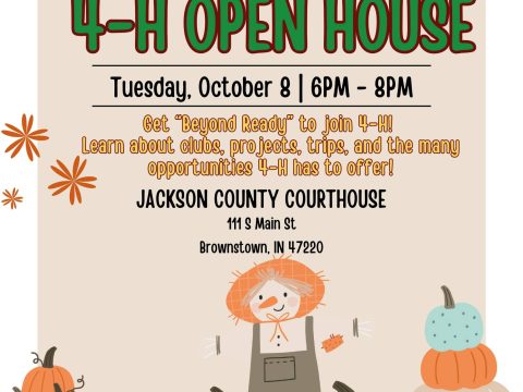 BROWNSTOWN – Purdue Extension-Jackson County is hosting a 4-H Open House on Tuesday, October 8, from 6-8 p.m. at the Jackson County Courthouse. The event…
