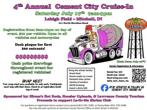 MITCHELL— Car enthusiasts and community members are revving up for the 4th Annual Cement City Cruise-In, set for Saturday, July 19, from 9 a.m. to 3 p.m….