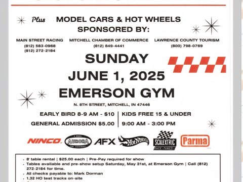 MITCHELL – The inaugural Greater Indiana Slot Car Swap Meet, featuring model cars and Hot Wheels, is scheduled for Sunday, June 1, 2025, at Emerson…