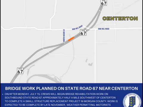 MORGAN COUNTY— Indiana Department of Transportation contractor Force Construction Company is scheduled to begin bridge rehabilitation work on southbound State Road 67, approximately half a mile…