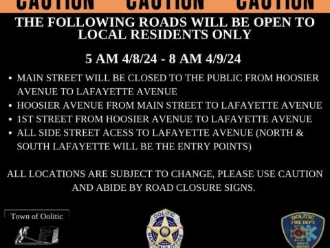 OOLITIC- The Town of Oolitic has instituted measures to ensure public safety during the eclipse weekend. A burn ban will be in effect April 6-8…