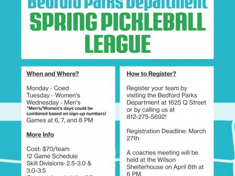 BEDFORD — The Bedford Parks Department is now accepting registrations for its Spring Pickleball League, with team sign-ups open through March 27. League play will…