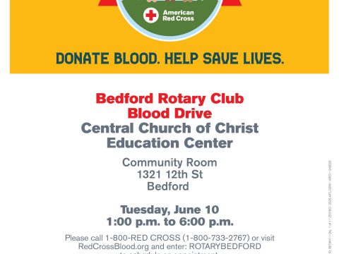 BEDFORD—The Bedford Rotary Club is partnering with the American Red Cross to host a blood drive on Tuesday, June 10th, from 1:00 p.m. to 6:00…