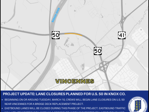 KNOX COUNTY – The Indiana Department of Transportation announces lane closures for U.S. 50 in Knox County. Beginning on or around Tuesday, March 10, crews…