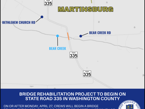 WASHINGTON COUNTY – Indiana Department of Transportation contractor Ram Construction Services Inc. is scheduled to begin a bridge rehabilitation project on State Road 335 on or…