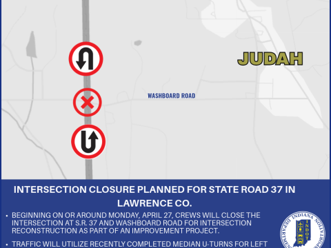 Project Update: Intersection closure planned for State Road 37 in Lawrence County as part of intersection improvement project