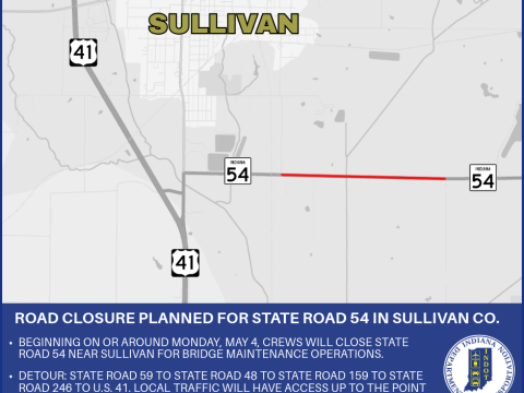 SULLIVAN COUNTY – The Indiana Department of Transportation announces a road closure is planned for State Road 54 in Sullivan County. Beginning on or around…