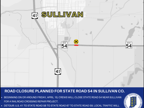 SULLIVAN COUNTY – The Indiana Department of Transportation announces a road closure for State Road 54 in Sullivan County. Beginning on or around Friday, April…