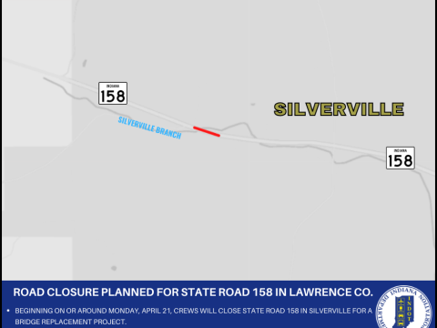 LAWRENCE CO. – The Indiana Department of Transportation announces a road closure for State Road 158 in Lawrence County. Beginning on or around Monday, April…
