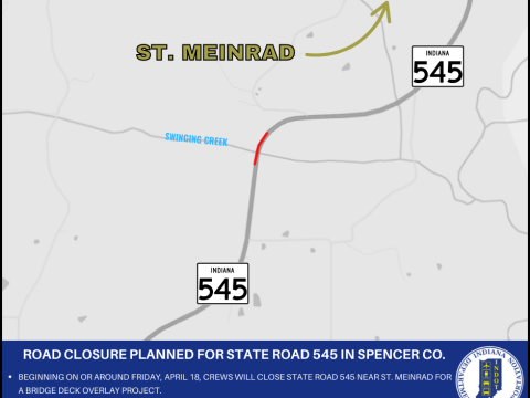 SPENCER CO. – The Indiana Department of Transportation announces a road closure for State Road 545 in Spencer County. Beginning on or around Friday, April…