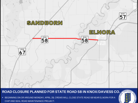 Road closure planned for State Road 58 in Knox and Daviess Counties