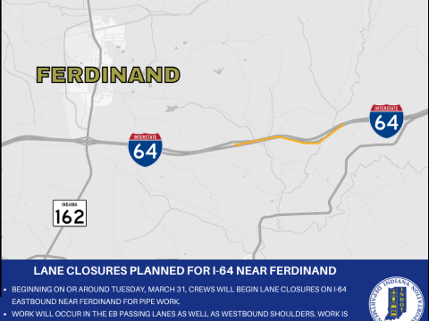 Lane closures planned for I-64 in Dubois, Spencer, and Perry Counties