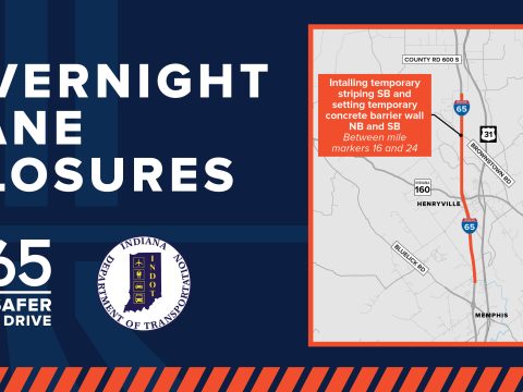 CLARK/SCOTT COUNTY – Overnight single lane closures are scheduled to begin on I-65 as part of the Safer Drive 65 project in Clark and Scott counties…