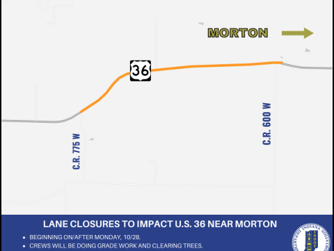 PUTNAM CO. – The Indiana Department of Transportation announces lane closures impacting U.S. 36 near Morton. Beginning on or after Monday, Oct. 28, crews will…