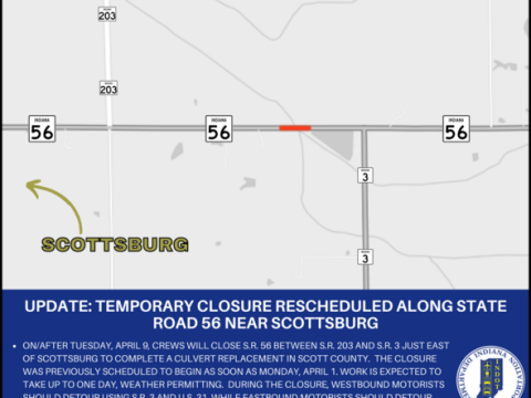 Temporary closure rescheduled along State Road 56 near Scottsburg