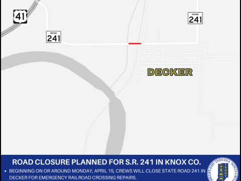 KNOX CO. – The Indiana Department of Transportation announces an emergency road closure for State Road 241 in Knox County near Decker. Beginning on or…