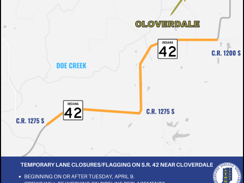 PUTNAM COUNTY- The Indiana Department of Transportation announces temporary lane closures coming to State Road 42 near Cloverdale, between County Road 1200 S and C.R….